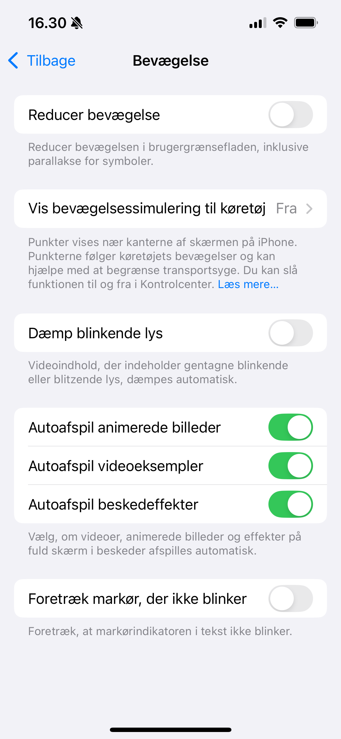 Opleves der udfordringer med mæglerappen - typisk hvor skærmen bliver sort eller blank - kan dette afhjælpes ved at gå til telefonens indstillinger ⮕ 'tilgængelighed' ⮕ 'bevægelse'. Her skal 'reducer bevægelse' være slået fra: